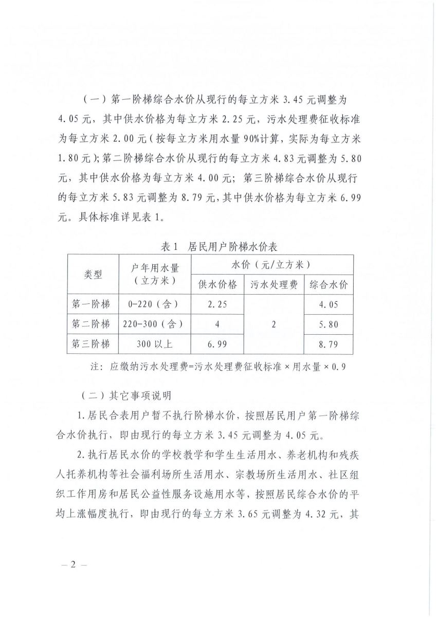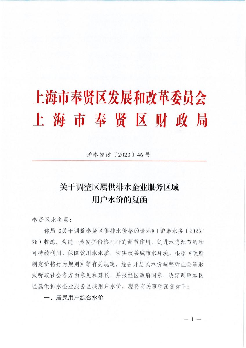 关于调整区属供排水企业服务区域 用户水价的复函 2023-12-21